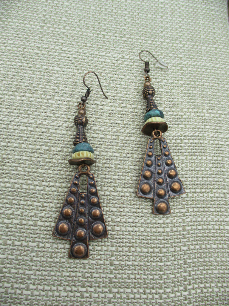 Measuring 2.75" from the bottom of the ear wires, these earrings are constructed of delightful mélange of colors, textures, shapes and sizes. For someone who wants a pair of earrings that are truly creative and unique, these are that pair!