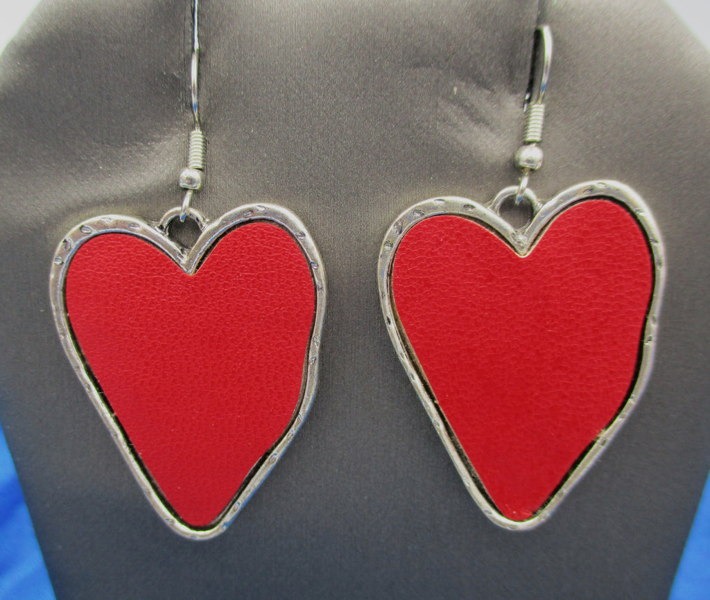 Dramatic faux leather surrounded by molded silver colored metal make these earrings appear both "soft" and dramatic. Regardless, is there a better message to send to your loved ones, your friends, and the world in general? 1.25" from the bottom of the ear wire.